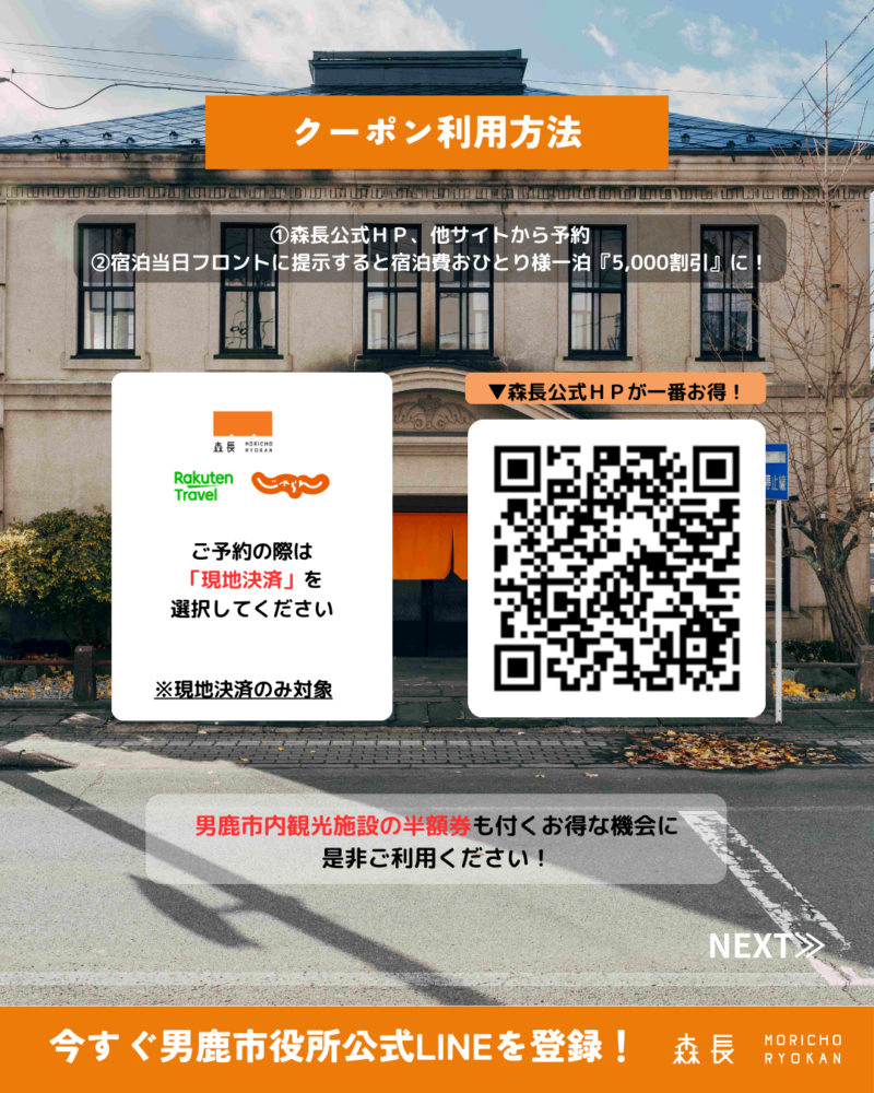 【お申込は男鹿市公式LINEから✅宿泊助成で男鹿に泊まろう👹】