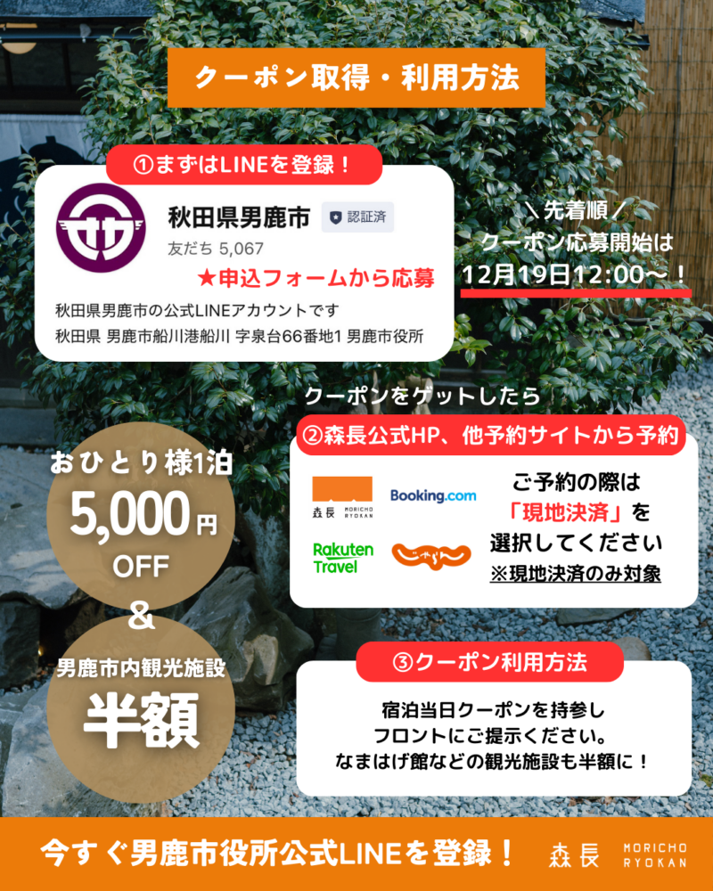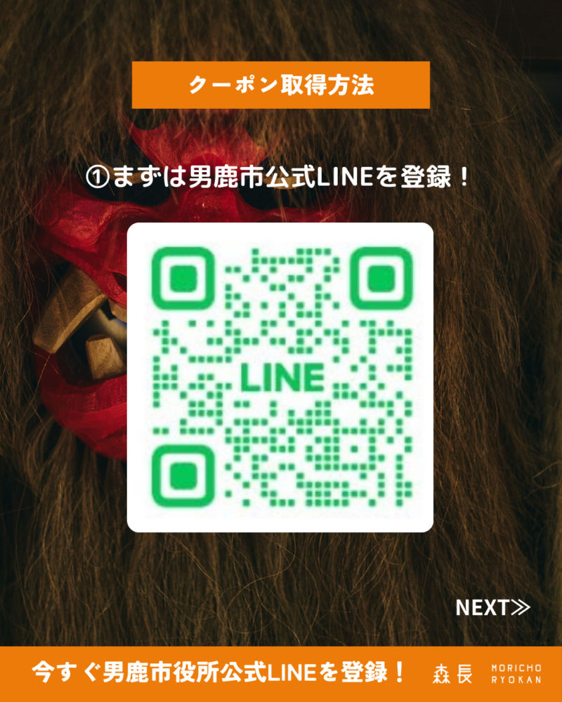 【お申込は男鹿市公式LINEから✅宿泊助成で男鹿に泊まろう👹】