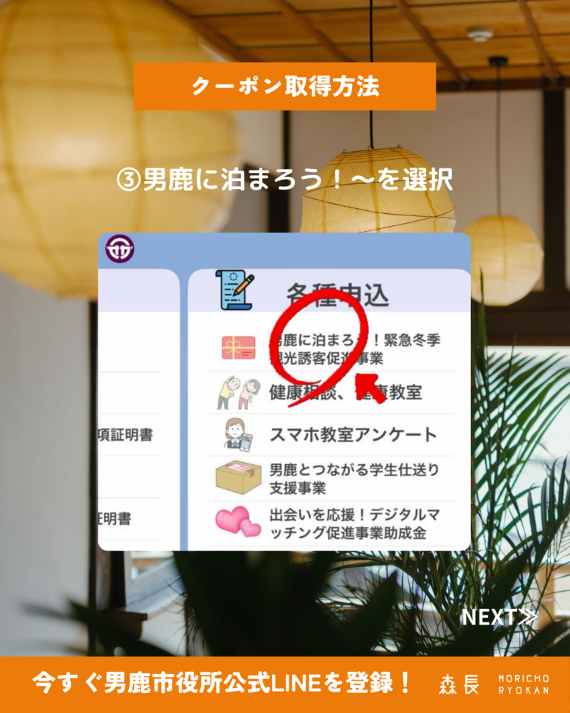 ④男鹿に泊まろう!~をタップ