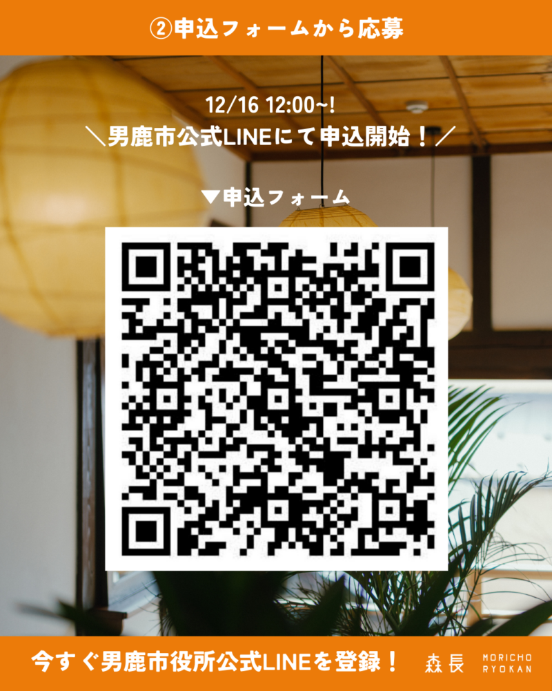 ⭕️先着8,000人で、男鹿市民枠は1,500人!男鹿市公式LINE(https://page.line.me/898jmbub)からお申込を💡