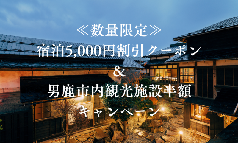 ≪数量限定≫宿泊5,000円割引クーポン&男鹿市内観光施設半額キャンペーン